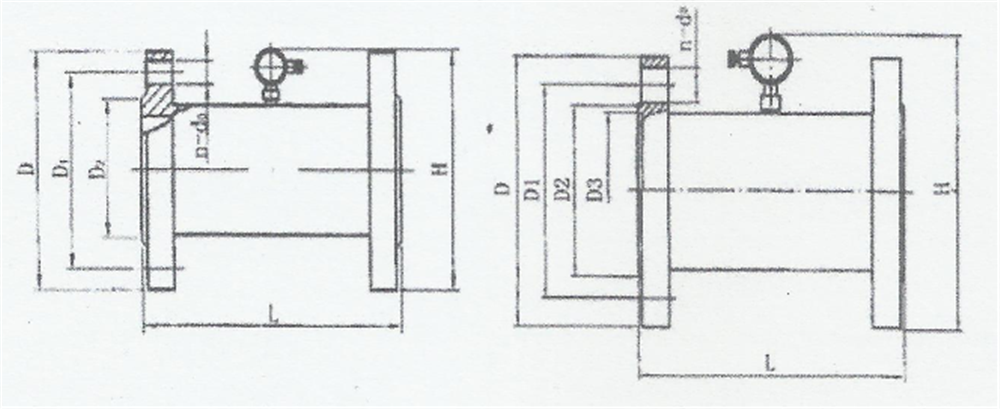 | 公稱通徑(DN)mm | 傳感器尺寸(mm) | 法蘭尺寸(mm) | 螺紋尺寸 | 其它 | |||||