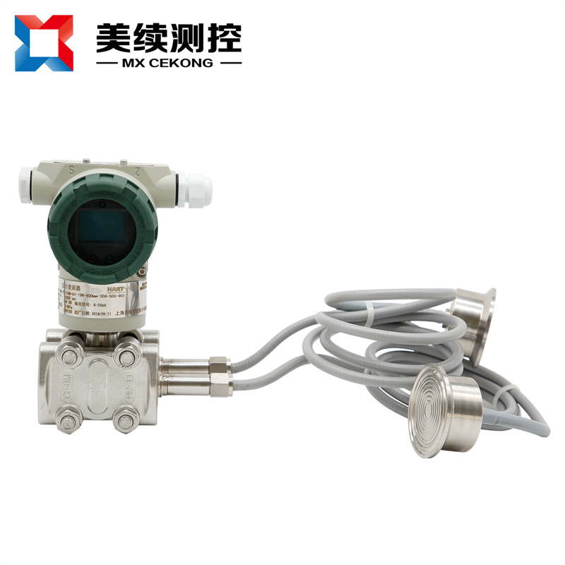 3、當(dāng)測量具有腐蝕性或含有結(jié)晶顆粒,以及粘度大、易凝固等介質(zhì)的測量時,為解決引壓管線腐蝕或堵塞的問題,可以采用法蘭式差壓變送器的法蘭直接與容器上的法蘭連接,作為敏感元件的測量頭(金屬膜盒)經(jīng)毛細管與變送器的測量室相連通,在膜盒、毛細管和測量室所組成的封閉系統(tǒng)內(nèi)充滿硅油,作為傳壓介質(zhì),起到變送器與被測介質(zhì)隔離的作用。