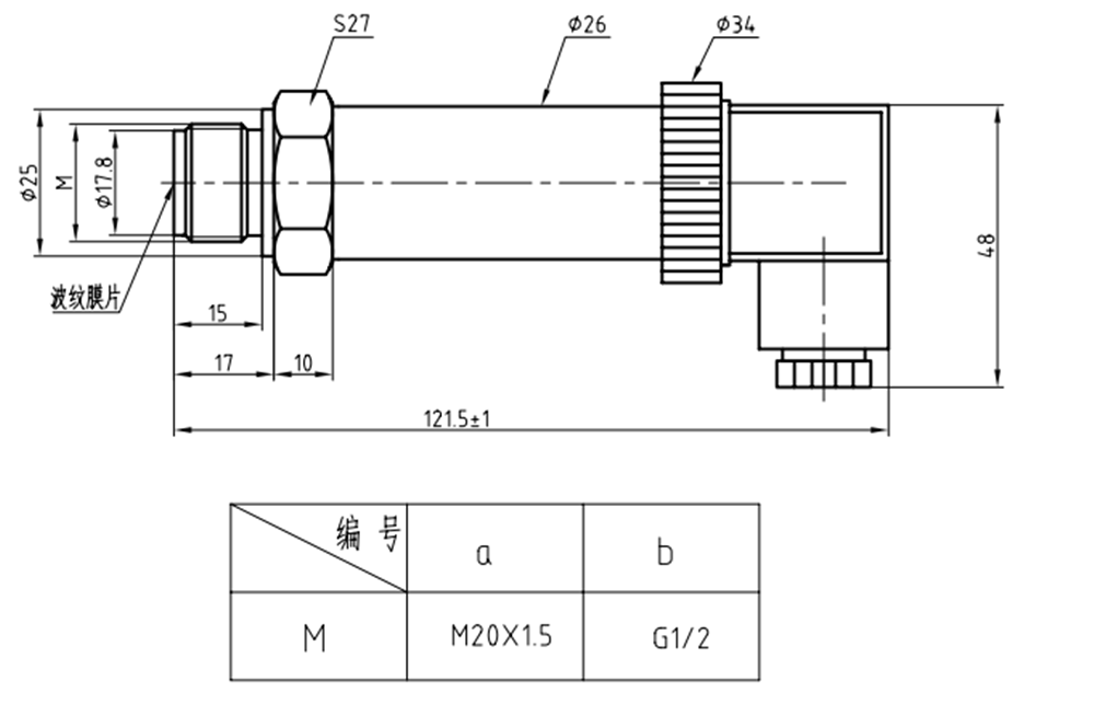 | 型號(hào) | 量程(bar) | 精度 | 輸出信號(hào) | 螺紋接口 | 電氣連接 | 其它要求 |