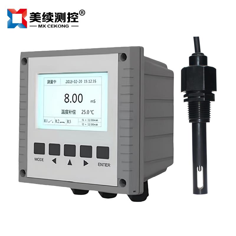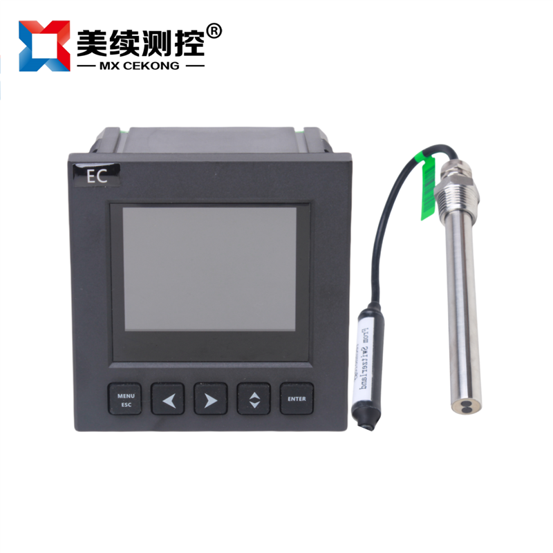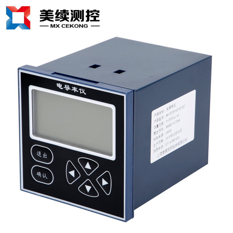 測(cè)量原理:為避免電極極化,儀表產(chǎn)生高穩(wěn)定度的正弦波信號(hào)加在電極上,流過電極的電流與被測(cè)溶液的電導(dǎo)率成正比,儀表將電流由高阻抗運(yùn)算放大器轉(zhuǎn)化為電壓信號(hào)后,經(jīng)程控信號(hào)放大、相敏檢波和濾波后得到反映電導(dǎo)率的電位信號(hào);微處理器通過開關(guān)切換,對(duì)溫度信號(hào)和電導(dǎo)率信號(hào)交替采樣,經(jīng)過運(yùn)算和溫度補(bǔ)償后,得到被測(cè)溶液在25℃時(shí)的電導(dǎo)率值和當(dāng)時(shí)的溫度值。