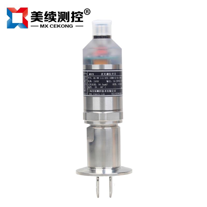 小音叉料位開關(guān)MX-WW-144-05X是專用對于空間有限的容器、槽罐和各種管道的液位,料位測量,控制的。小音叉物位開關(guān)通過震動原理來測量物位高度,音叉由晶體激勵產(chǎn)生振動,當(dāng)音叉被液體或固體浸沒時振動頻率發(fā)生變化,通過安裝在音叉基座上的一對壓電晶體使音叉在一定共振頻率下振動。當(dāng)音叉與被測介質(zhì)相接觸時,音叉的頻率和振幅將改變,這些變化由智能電路來進(jìn)行檢測,處理并將之轉(zhuǎn)換為一個開關(guān)信號。音叉式物位開關(guān)又被稱作“電氣浮子”,凡使用浮球開關(guān)和由于結(jié)構(gòu)、湍流、攪動、氣泡、振動等原因不能使用浮球開關(guān)的場合均可使用“電氣浮子”。由于該物位開關(guān)無活動部件,因此無需維護(hù)和調(diào)整,是浮球開關(guān)的升級換代產(chǎn)品,廣泛應(yīng)用于自來水、礦泉水、紙漿、膠水、染料、泥漿、堿溶液、酸溶液、啤酒、飲料、石化、輕工、食品、水處理、可產(chǎn)生氣體的液體、流動性好的固體粉料或顆粒。對物位進(jìn)行上、下限報警及控制。