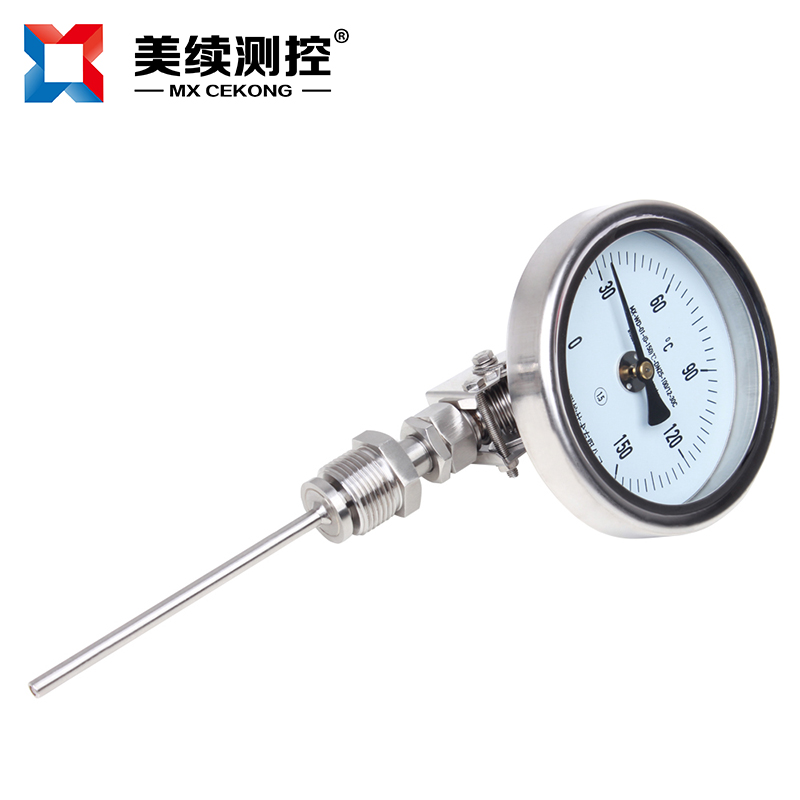 雙金屬溫度計是基于繞制成環(huán)性彎曲狀的雙金屬片組成。一端受熱膨脹時,帶動指針旋轉(zhuǎn),工作儀表便顯示出熱電勢所應的溫度值。