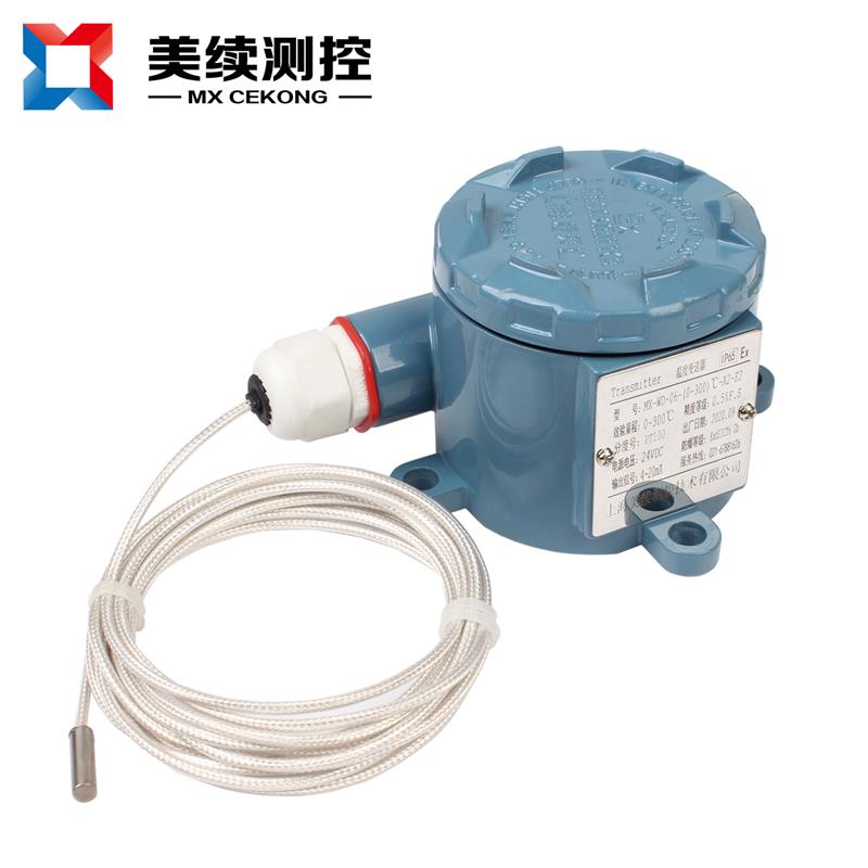 MX-WD-06T 溫度變送器是采用高精度的進口PT100鉑電阻作為感溫元件,再通過電路處理模塊將電阻信號轉(zhuǎn)換成標準的4-20mA電流信號,作為一體化溫度變送器在工業(yè)現(xiàn)場直接輸出 4~20mA 信號,這樣既省去昂貴的補償導線,又提高了信號長距離傳送過程中的抗干擾能力,同時又增加LCD就地顯示功能,可以有效地使現(xiàn)場工作人員直接看到有效數(shù)值變化,能夠有效地采取應(yīng)對措施。變送器部件精度高、功耗低,使用環(huán)境溫度范圍寬,工作穩(wěn)定可靠。而且由于采用硅橡膠密封結(jié)構(gòu),變送器耐震、耐濕,適宜于惡劣現(xiàn)場環(huán)境中使用。