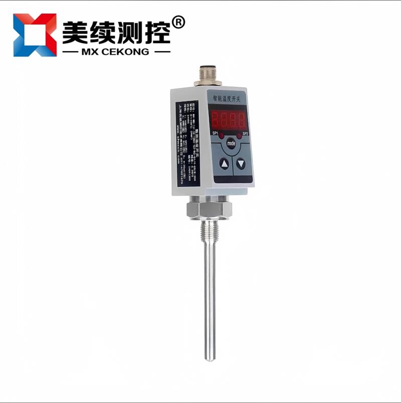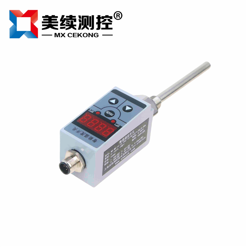 MX-WD-08 智能溫度開關(guān)是集溫度測(cè)量,顯示,輸出、控制于一體的智能數(shù)顯溫度測(cè)控產(chǎn)品。該產(chǎn)品為全電子結(jié)構(gòu),前端采用PT100溫度傳感器,輸出信號(hào)由高精度,低溫漂的放大器放大處理,送入高精度的A/D轉(zhuǎn)換器,轉(zhuǎn)換成微處理器可以處理的數(shù)字信號(hào),經(jīng)過(guò)運(yùn)算處理的信號(hào)控制兩路開關(guān),對(duì)控制系統(tǒng)溫度進(jìn)行測(cè)控。該智能數(shù)字溫度開關(guān)使用靈活,操作簡(jiǎn)單,調(diào)試容易,安全可靠。廣泛應(yīng)用于水電,自來(lái)水,石油,化工,機(jī)械,液壓等行業(yè),對(duì)流體介質(zhì)的溫度進(jìn)行測(cè)量顯示和控制。