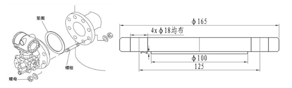 圖1 法蘭式液位變送器安裝實例 圖2(DN50法蘭 國標)