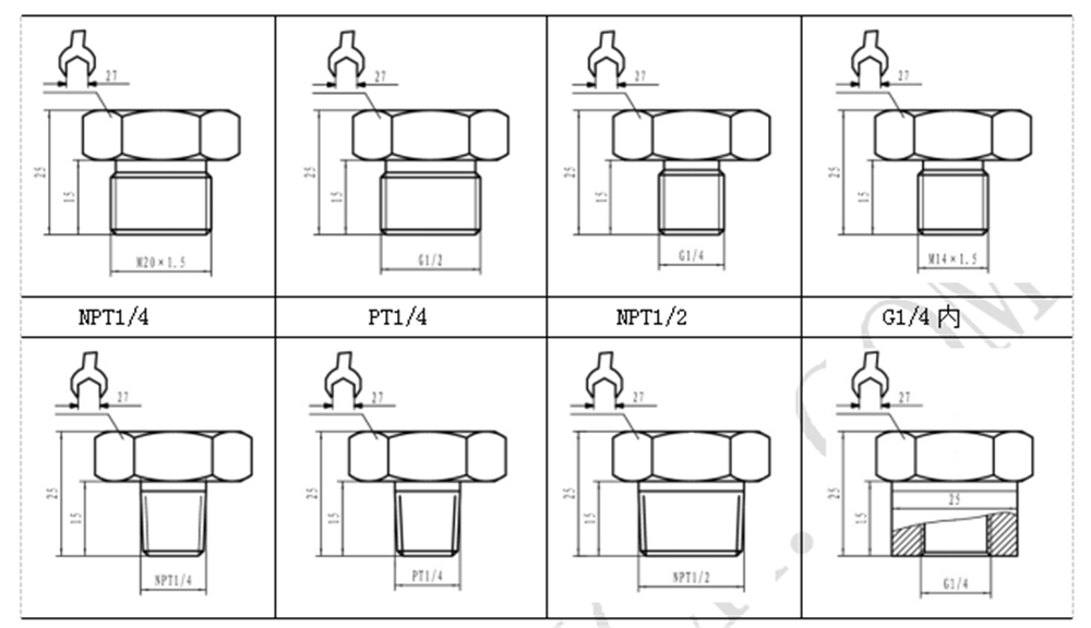壓力連接:G1/4, G1/2, 1/2NPT, 1/4NPT, M12*1.5等(可按客戶要求定制)