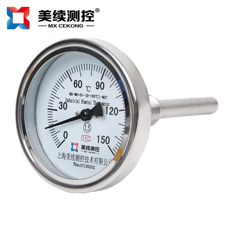 雙金屬溫度計是基于繞制成環(huán)性彎曲狀的雙金屬片組成。一端受熱膨脹時,帶動指針旋轉(zhuǎn),工作儀表便顯示出熱電勢所應的溫度值。