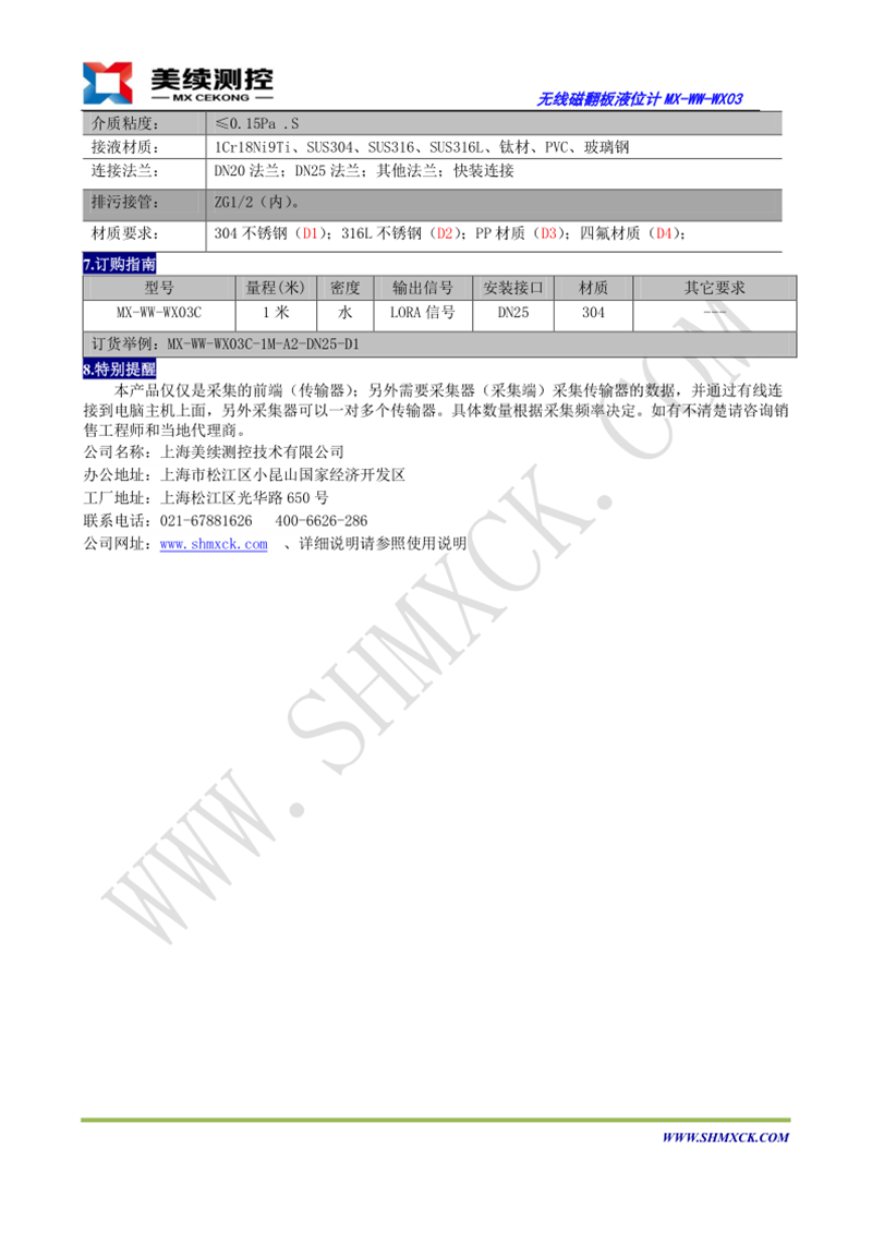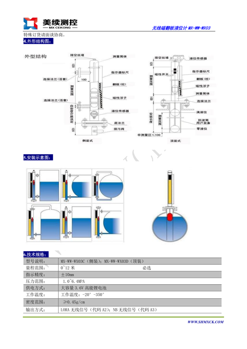MX-WW-WX03系列無(wú)線磁性翻柱液位計(jì),利用浮力和磁耦合原理,將液位的變化線性地傳遞到顯示器上,清晰地指示出液位的高速度。