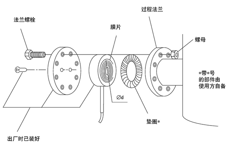 圖1 法蘭式液位變送器安裝實例 圖2(DN50法蘭 國標)