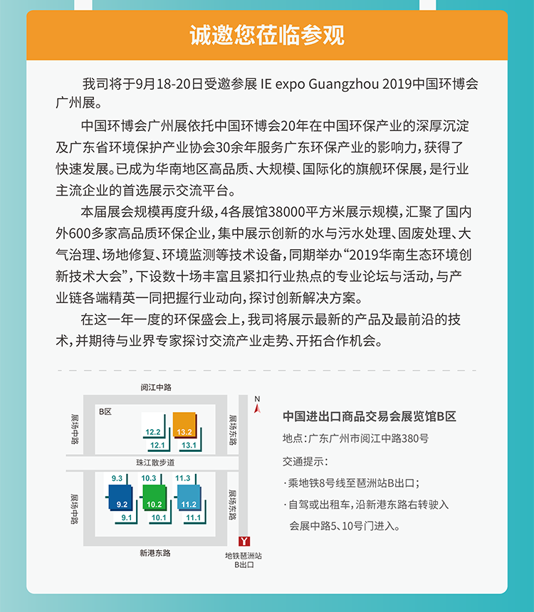 8月底剛剛分別的上海國(guó)際化工展,美續(xù)測(cè)控即將在IE expo Guangzhou 2019中國(guó)環(huán)博會(huì)廣州展展館10.2,展位號(hào)G75與你們?cè)俅蜗嘤觥?br />